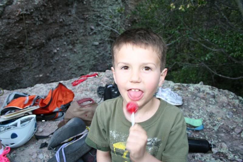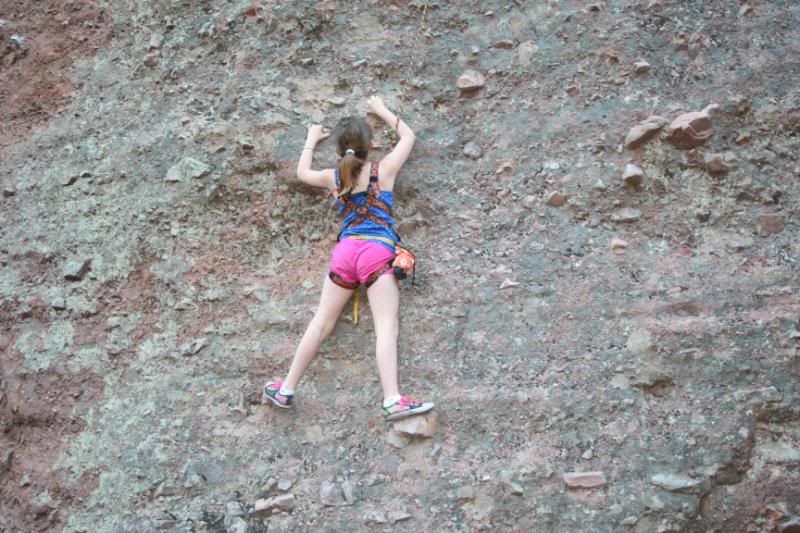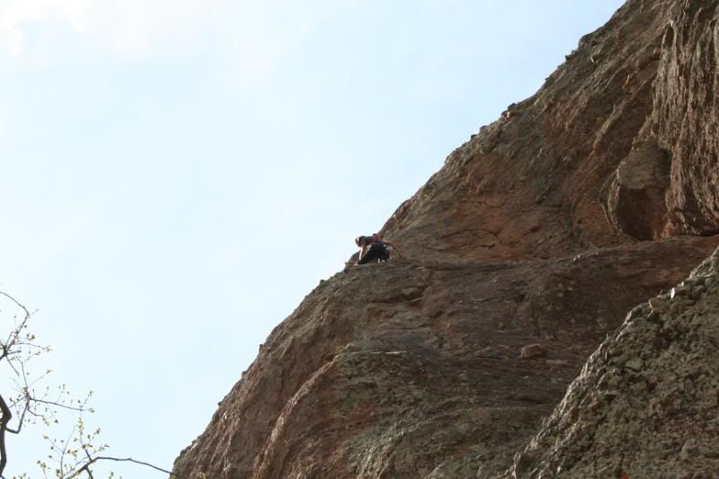 Mom on Portent she hasn't been climbing much lately and we decided to some easy classics.