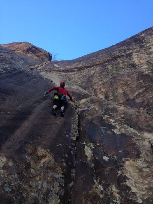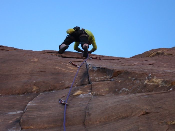 It took 4:25 to simul climb up Resolution. Super fun route that is mostly 5.8 with a touch of 5.10 and 5.11+