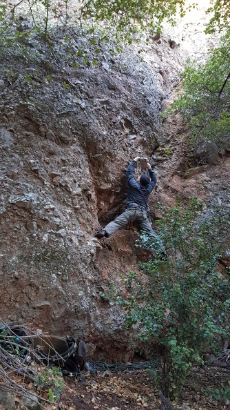 Jeepers 5.10b 8 bolts 95 feet.  Chains have been installed.  Tops out at the start of Humping Lizards.  A bit loose but kind of fun.