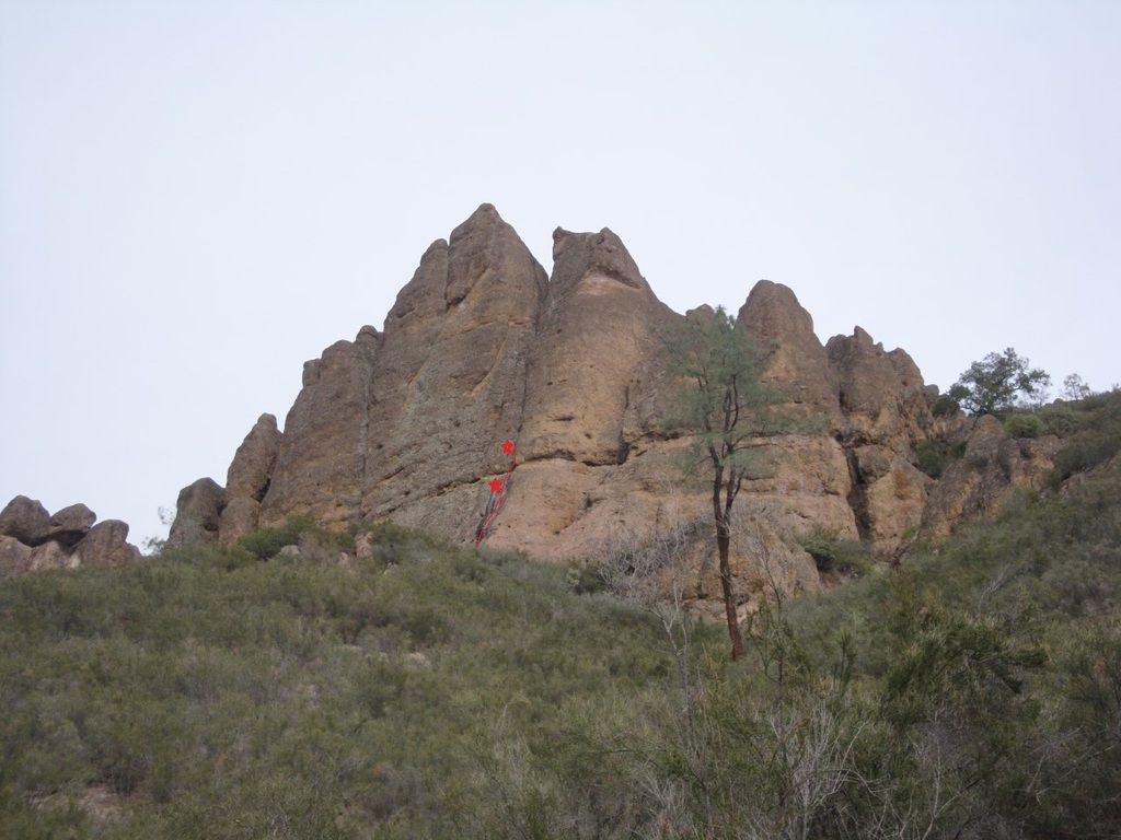 2nd bolt I stood as tall as possible and drilled on the overhanging portion, then bouldered the chute/1/2 chimney thing up a bit.  Downclimbing was scary.