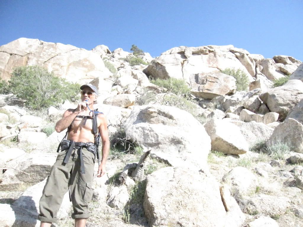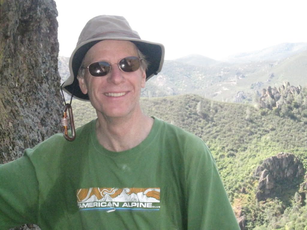 I ended the day by hiking from the High Peaks straight down to The Citadel. There are about 5 pinnacles in an area well below Egg Shell, I had plenty of daylight and so off I went. I got a lot checked out (after some truly epic brush crashing). Lots of new-route potential, which I may be realizing (in spite of the nasty way I got there), because... I found an old, never reported route. Looked like 5.7 or 5.8 face to a big lodestone which would take a sling. Then a ledge with a bolt above it, then, who knows, but it clearly went to the top. The bolt had an SMC hanger, so vintage 70s or 80s? Who's in for a recon, a re-bolting, and maybe, also, a new route?