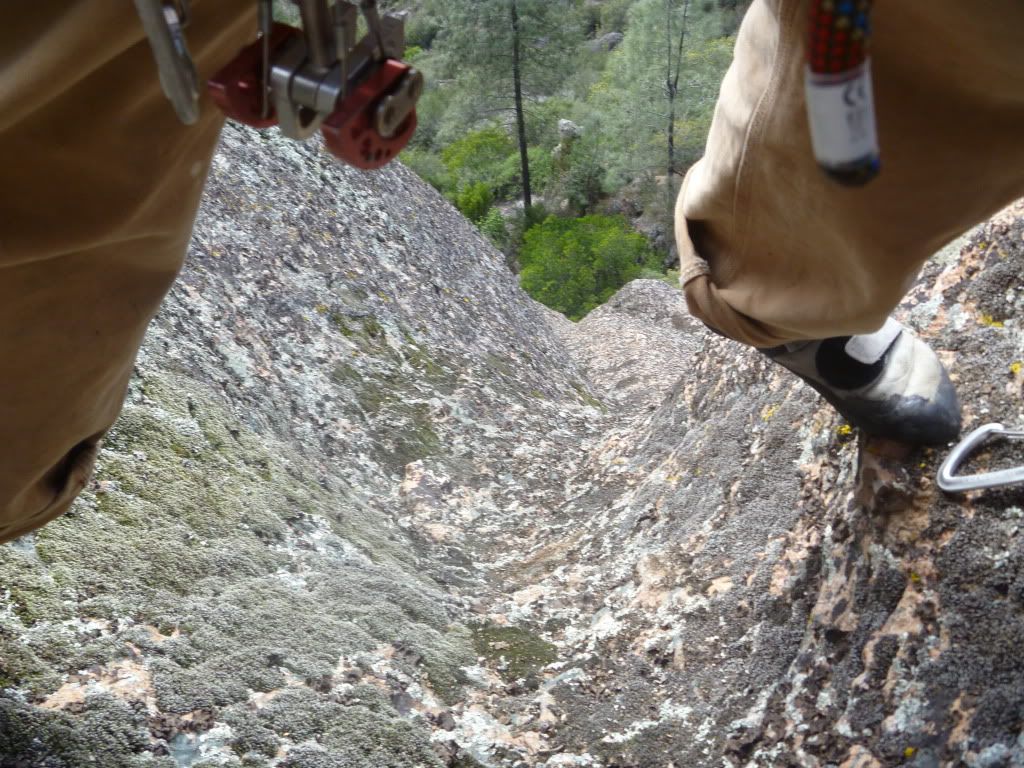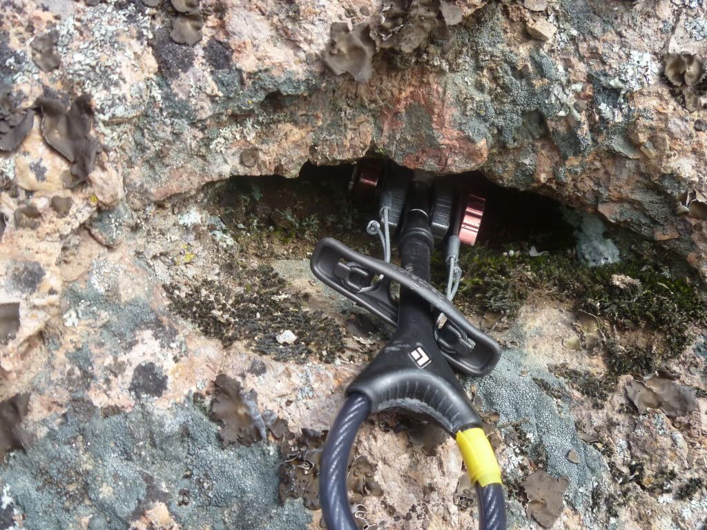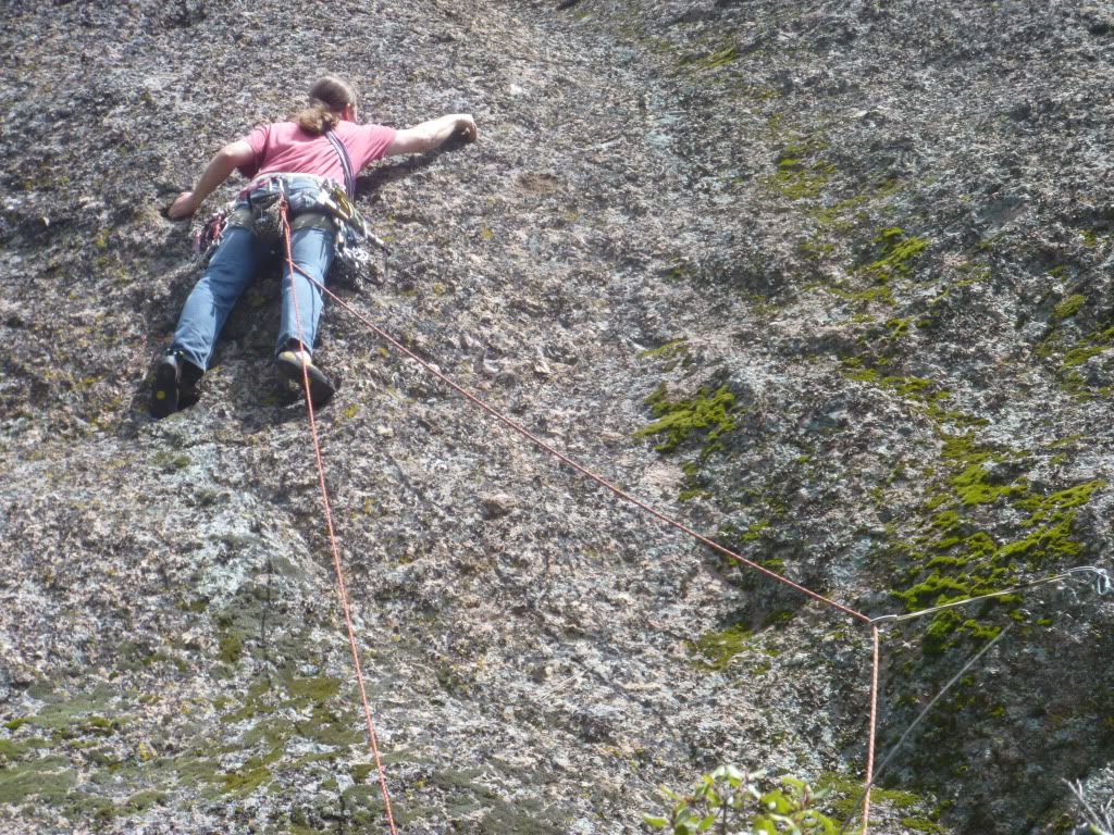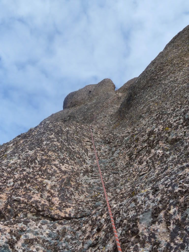 I continue to slab-pimp my way up to a good stance, easily 75feet off the deck, and fire in a standard 3.5" bolt.  Down I go, with both the candidate and myself vowing to return to the project.