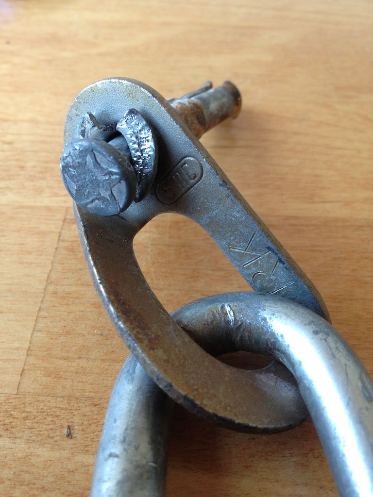 For those of you who wonder what some of the old bolts you use for protection look like (as may be obvious, the two replaced bolts are juxtaposed with a new, long, stainless steel piece):