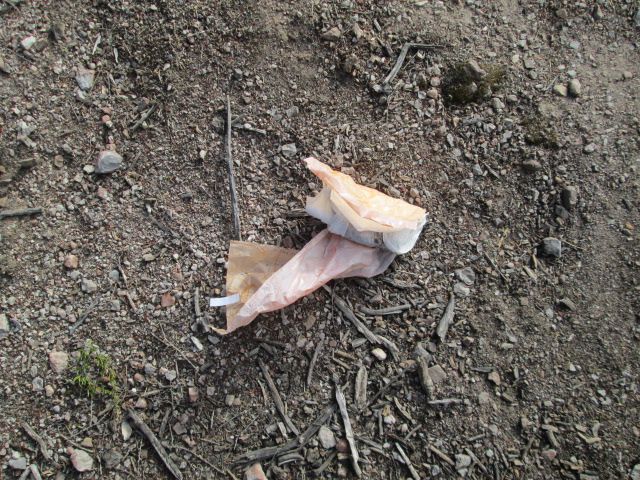 I did not find any more trash until I re-joined the High Peaks Trail near The UnMentionable. From here I walked down the trail to the Anvil. Along the way I found more bottles, TP, and this